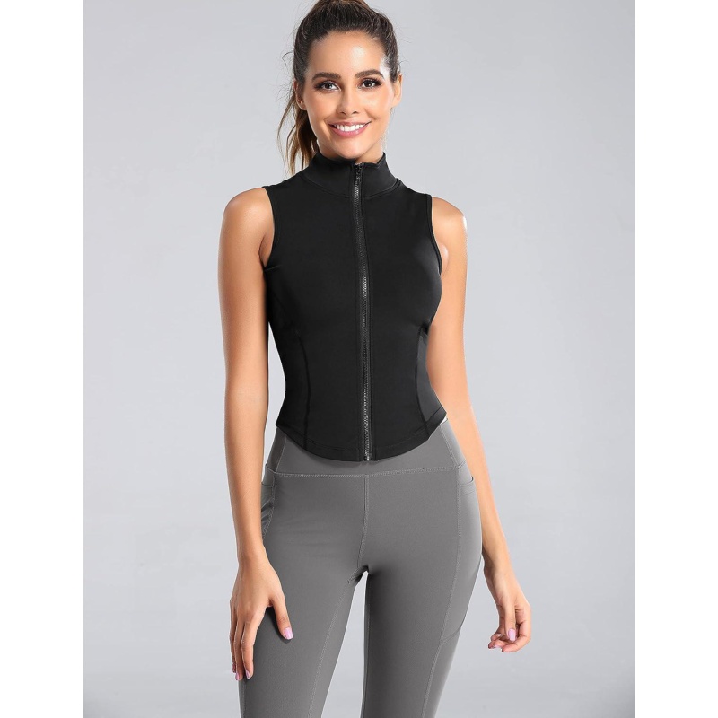 Hvewarm Women Summer Lightweight Cropped Athletic Zip Up Sleeveless Jackets Workout Gym Seamless Vests