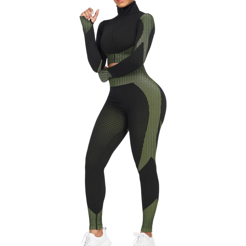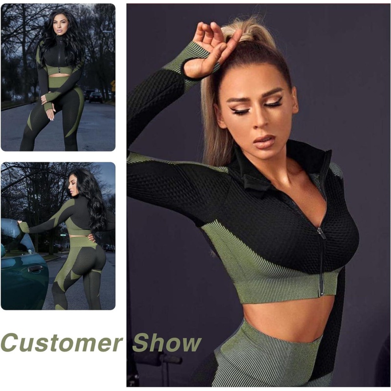 FeelinGirl Workout Sets for Women-2 Piece Seamless Yoga Outfit High Waist Leggings Crop Top Gym Sets