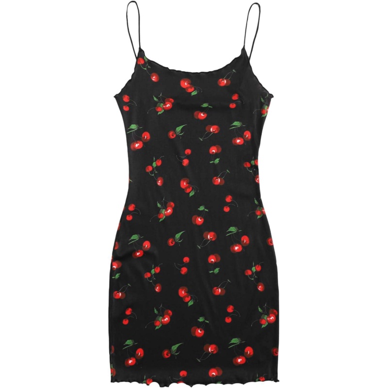 Milumia Womens Cute Cherry Print Spaghetti Straps Sleeveless Bodycon Mini Cami Dress