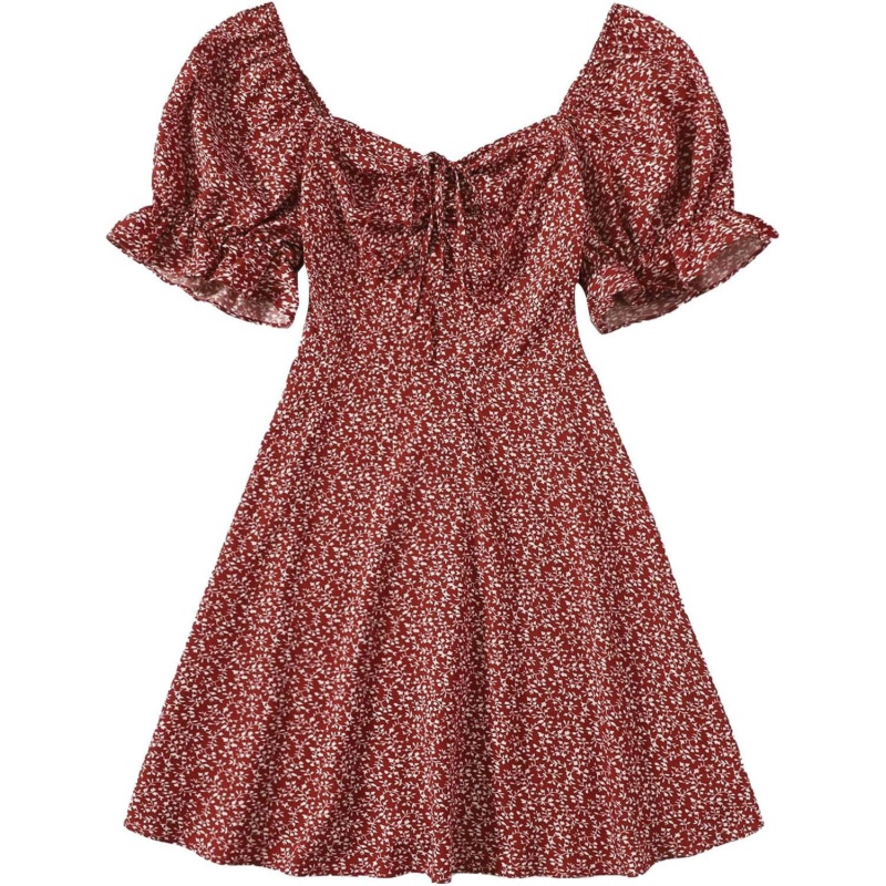 Floerns Womens Summer Drawstring Sweetheart Neck Puff Sleeve A Line Short Dress